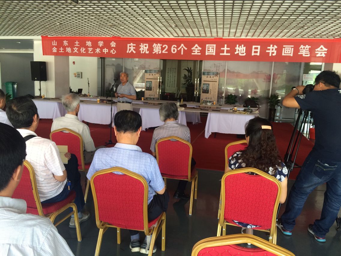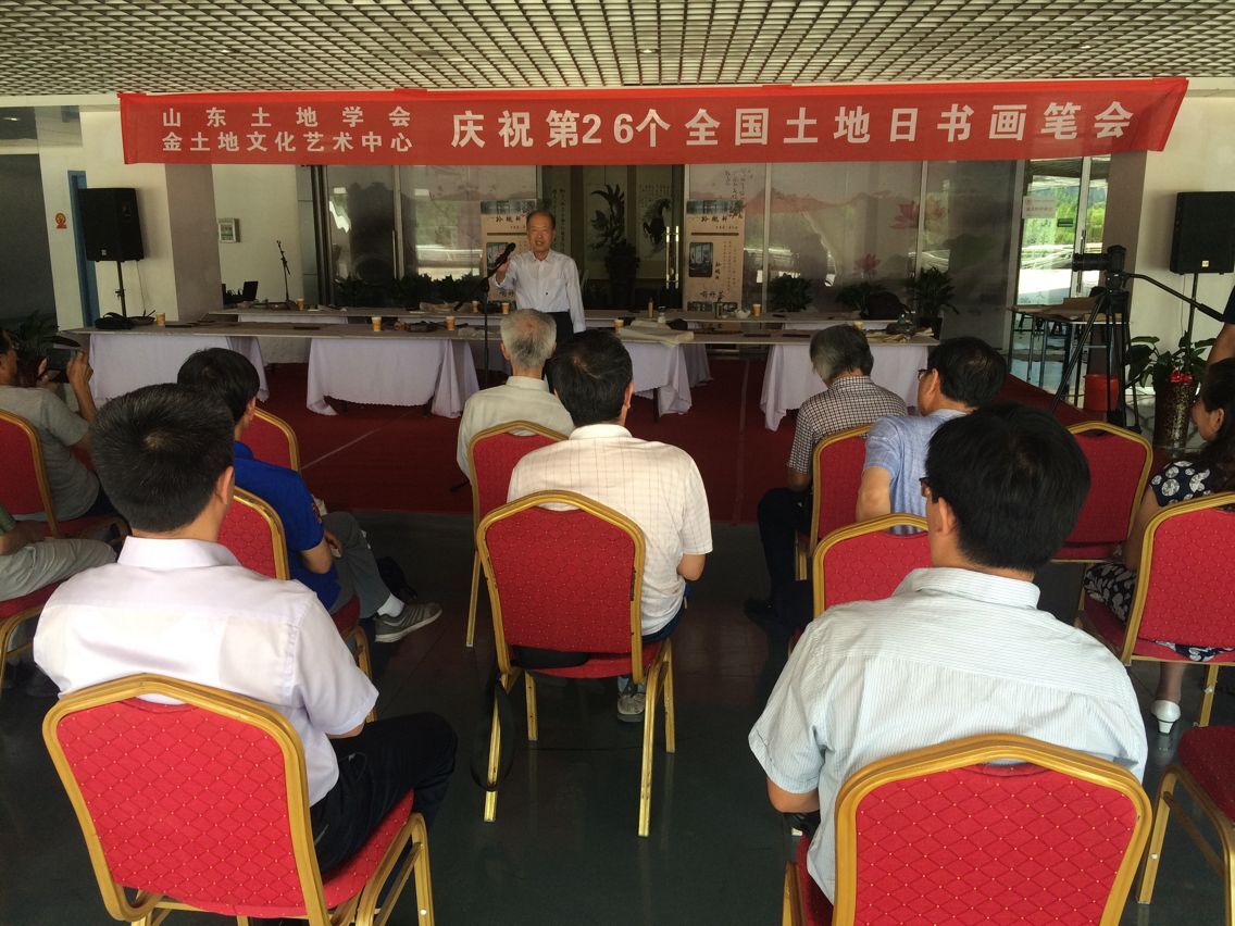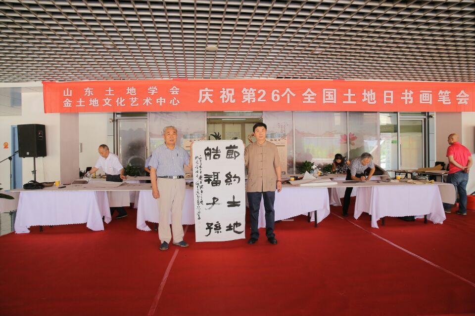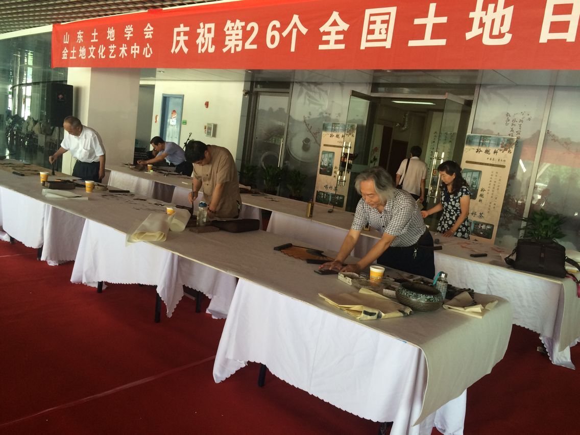 为庆祝6.25全国土地日,山东土地学会与金土地文化艺术中心在奥体西柳体育馆二楼215、216入口中间柃栊轩举办书画笔会活动。