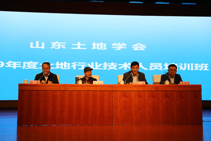 “推进多规合一,全面启动省级国土空间规划编制,积极开展市县国土空间总体规划试点,因地制宜开展乡镇国土空间规划、村庄规划编制”,是今年全省自然资源工作重点之一。山东土地学会通过调研,了解到很多会员单位对如何开展下一步工作存在着较多疑惑。为帮助会员单位答疑解惑,使其更好地为自然资源管理和国土空间规划编制提供优质高效服务,10月10日至11日,在济南举办了2019年度全省土地行业技术人员培训班。山东土地学会副理事长刘嘉、董其军,秘书长李光出席并参加培训班开班仪式。来自全省各会员单位的三百九十余位骨干技术人员参加了本次培训班。学会邀请上届理事长李明启出席开班仪式并作了讲话。开班仪式由刘嘉主持。