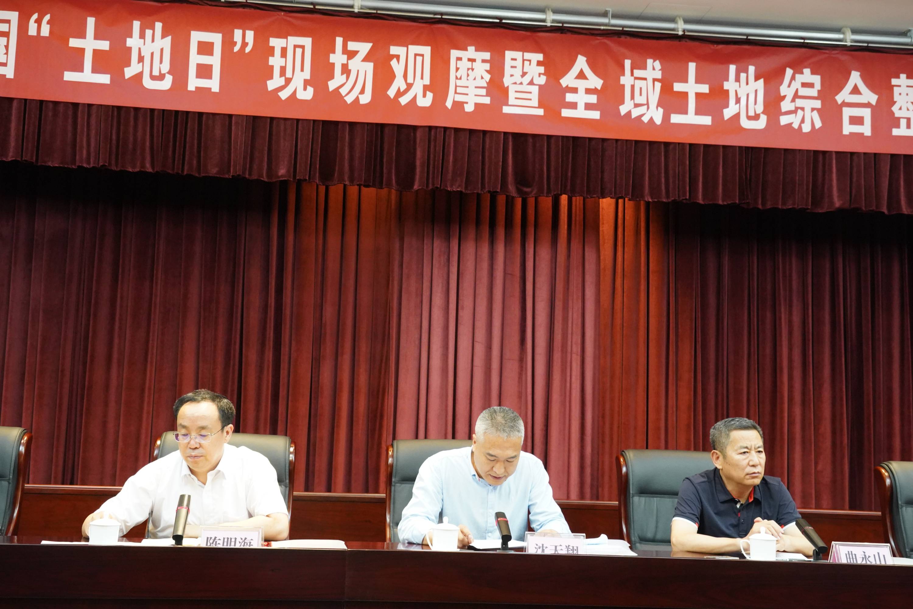 为深入贯彻习近平生态文明思想,引导全社会树立节约用地、保护耕地的意识。6月24日,由山东土地学会、省国土空间生态修复中心、东营市自然资源和规划局联合举办的以“节约集约用地 严守耕地红线”为主题的第32个全国“土地日”现场观摩暨全域土地综合整治与生态修复交流会在东营举行。省国土空间生态修复中心党委书记、主任曲永山,山东土地学会理事长李光,省自然资源厅科技与国际合作处副处长沈天翔,东营市自然资源和规划局党组书记、局长陈明海,以及部分土地学会会员单位参加了此次交流会。会议由山东土地学会副理事长兼秘书长田秀林主持。