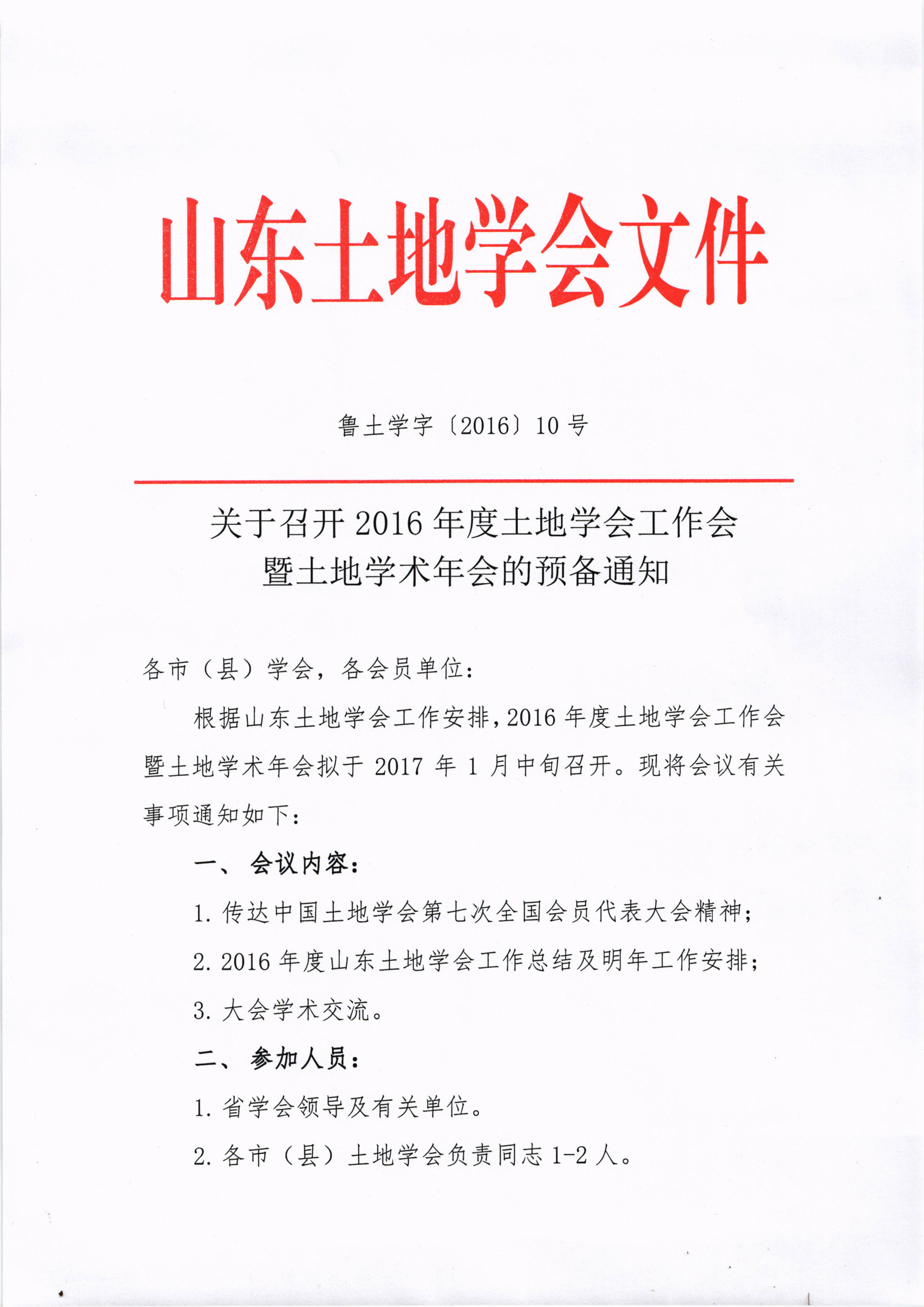 关于召开2016年度土地学会工作会曁土地学术年会的预备通知