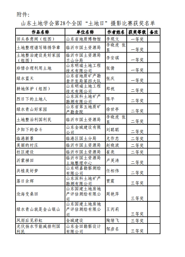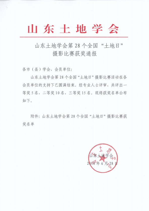 山东土地学会第28个全国“土地日”摄影比赛获奖通报