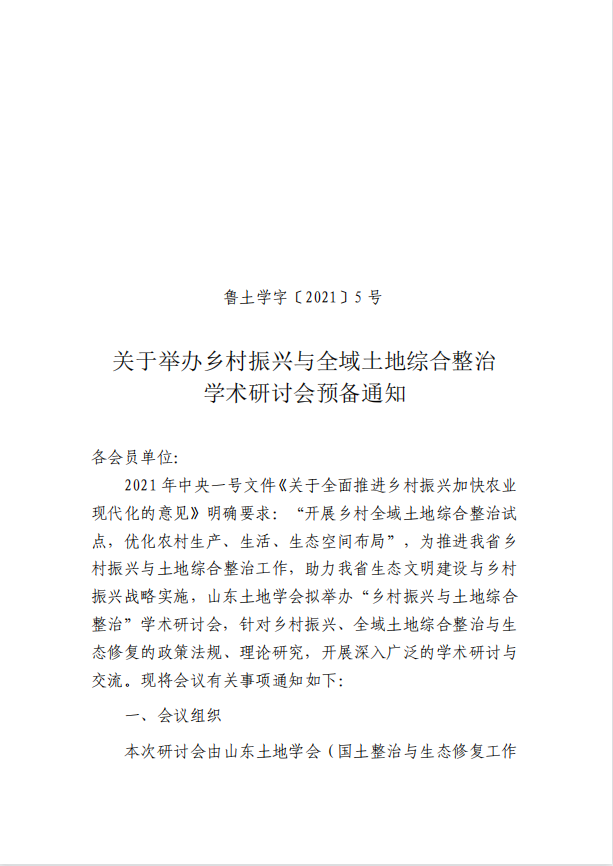 关于举办乡村振兴与全域土地综合整治学术研讨会预备通知