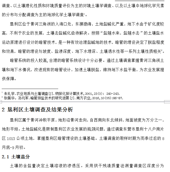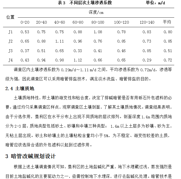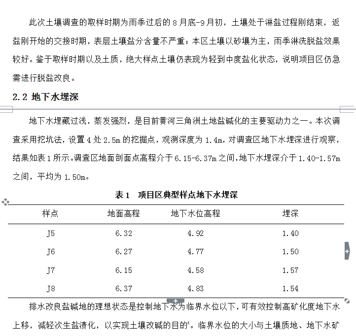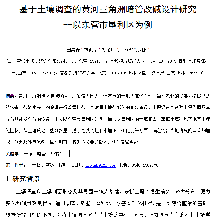 基于土壤调查的黄河三角洲暗管改碱设计研究——以东营市垦利区为例