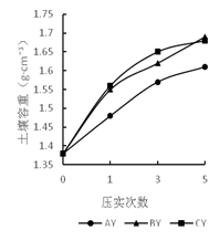 适宜的土壤容重对于土壤改良效果的保证具有重要的作用。对耕作土壤来说,具有一定厚度的犁底层对保持养分和水分是非常有益的。如果覆土层较厚通过复垦重新构筑犁底层或覆土前破坏了原有的犁底层,需要通过一定的外力进行压实来创造一个新的耕地土壤犁底层的效果。